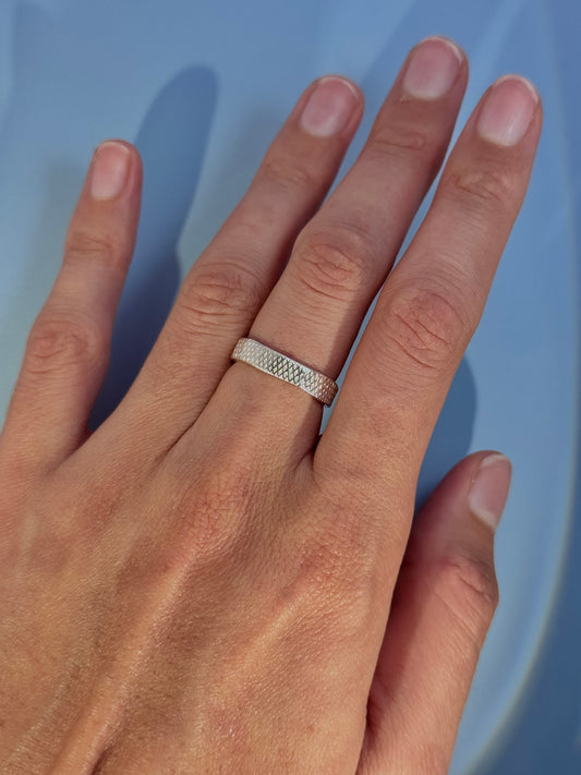 Organic stackable rings are inspired by the imperfectly perfect nature forms and delicate fingers of musicians. Add a subtle shine wearing this ring by itself. Several rings can be stacked together or with bigger rings for a statement look.