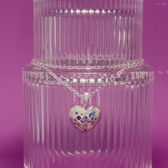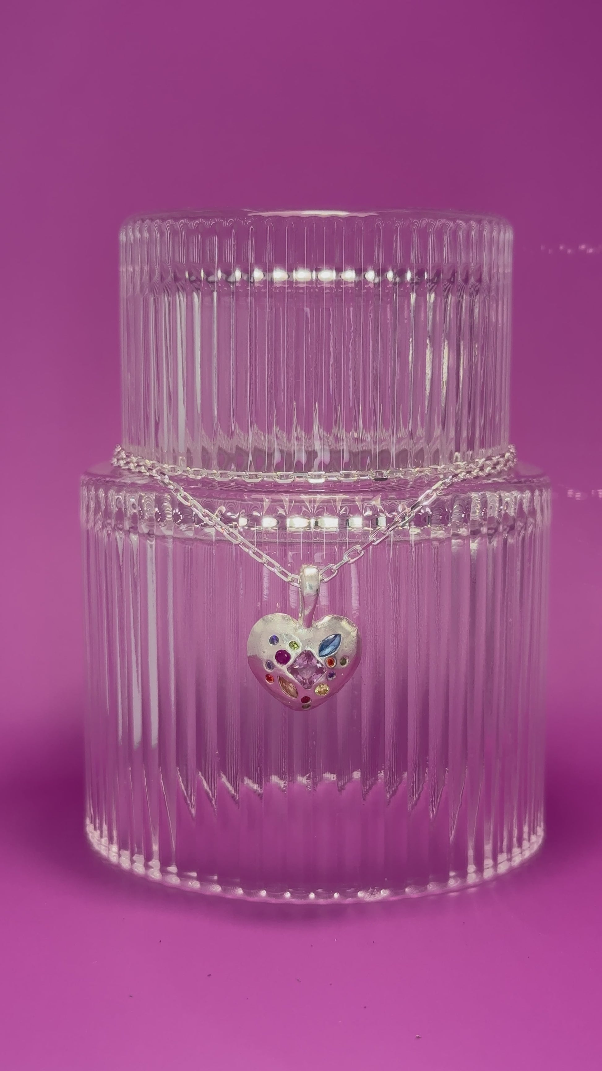 Heart pendant is crafted with precision and adorned with a captivating array of colorful gemstones. Universal symbol of love with a unique twist in design for you or your loved ones ♡
